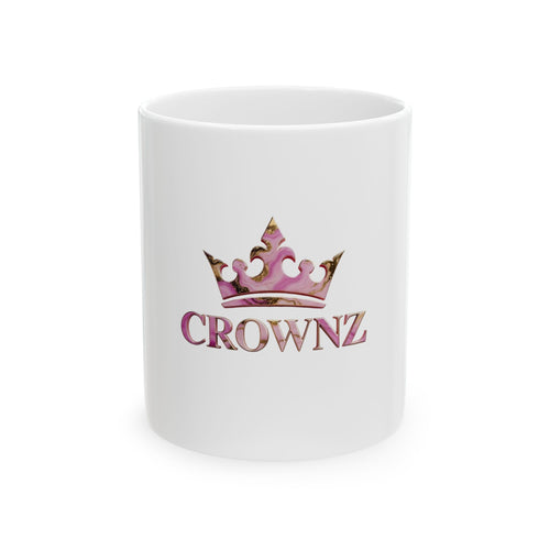 Crownz Pink Marble Ceramic Mug (11oz & 15oz) — Royal Crown Logo Coffee Cup